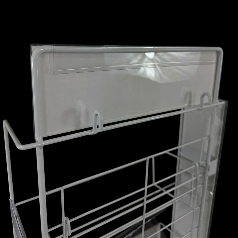 エンドサイド什器の上部に引っ掛けられるPOPを入れるためのケースです。